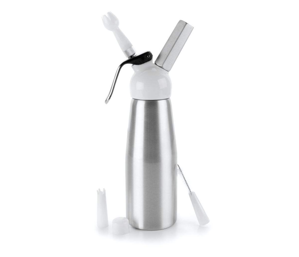 - Realice purés y cremas montadas, una gran variedad de mouses dulces y amargos, crema y salsas, así como deliciosos postres en segundos. - Mantiene el contenido hasta 14 días en la nevera. - Puede ser empleado en la cocina, bar, mesas, jardín, fiestas... - Incluye 3 boquillas intercambiables. - Incluye un cepillo para la limpieza de las boquillas. - Desmontable para facilitar la limpieza. - Incluye libro de instrucciones en 5 idiomas.